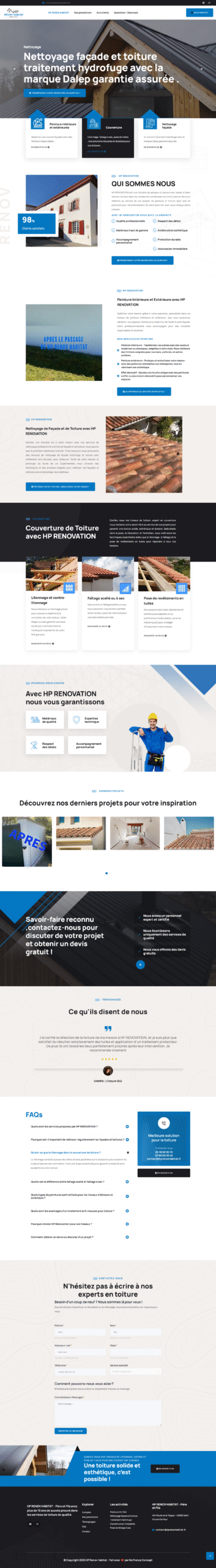 HP Rénov Habitat est une entreprise familiale située à Saint-Vincent-de-Paul (Landes), spécialisée dans les travaux de rénovation tels que la peinture intérieure et extérieure, le nettoyage de façades et de toitures, ainsi que la couverture. Afin de renforcer sa présence en ligne et de faciliter la prise de contact avec ses clients, l’entreprise a sollicité l’expertise de Ms France Concept pour la création de son site internet.